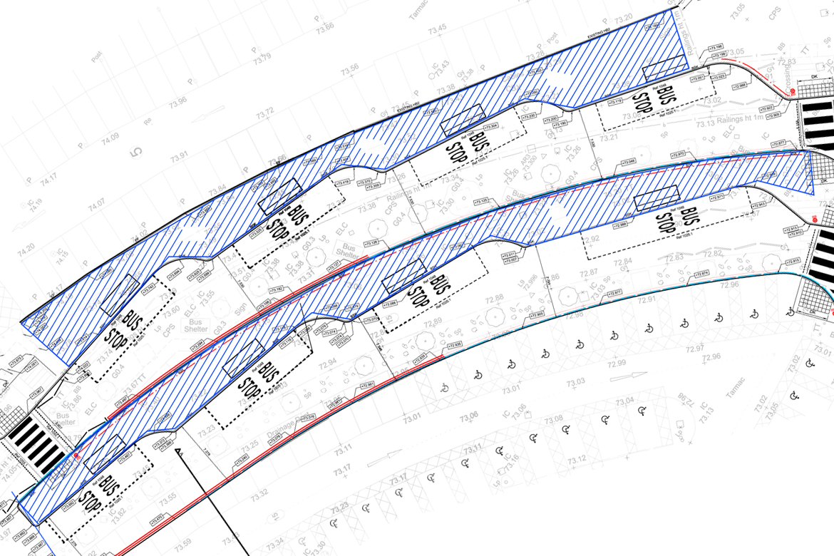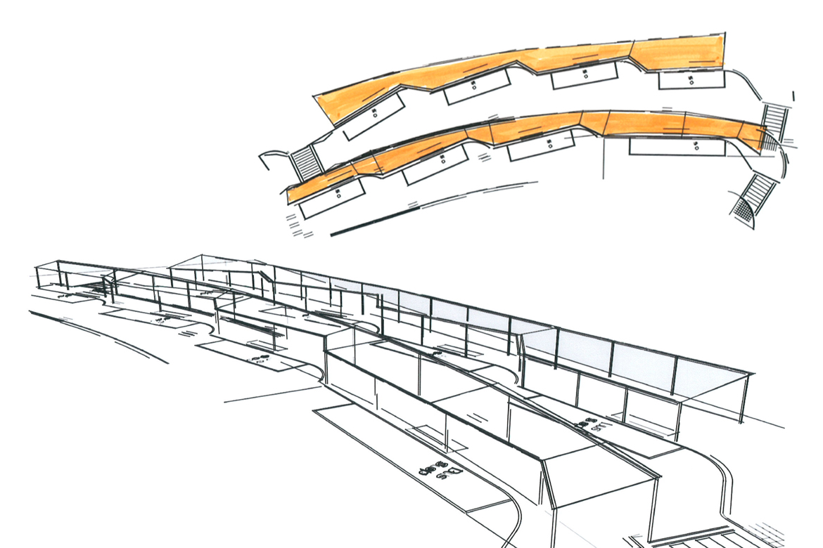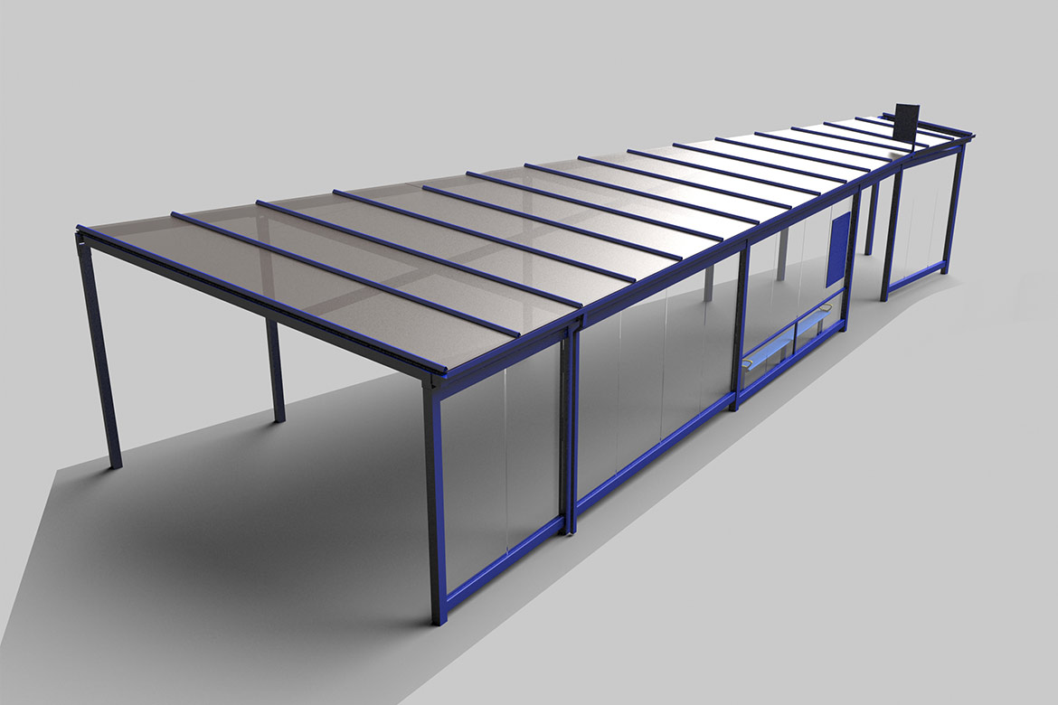 Whilst contracted to Queensbury Shelters in Portsmouth we designed two curved canopies to cover eight bus stands. Taking design cues from the outline sketch provided by the architects we provided a proposal to the main contractor. This was subsequently approved for construction.