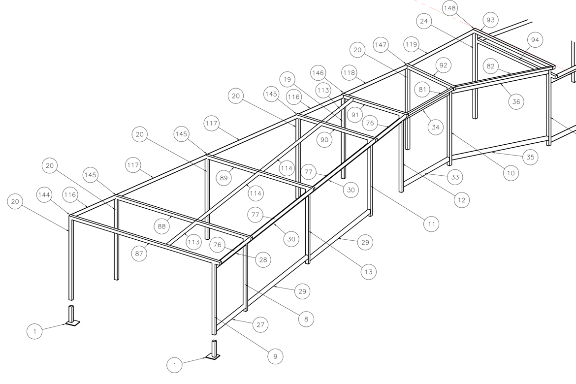 Accurate site levels were obtained meaning both canopies could be 3D modelled in cad to exactly establish the final design prior to manufacture. The design was kept as modular as possible, with common components used throughout. The only bespoke components were the roof brackets, these were designed in such a way to allow the canopy to change in width along it’s length.
