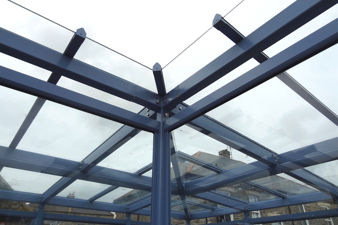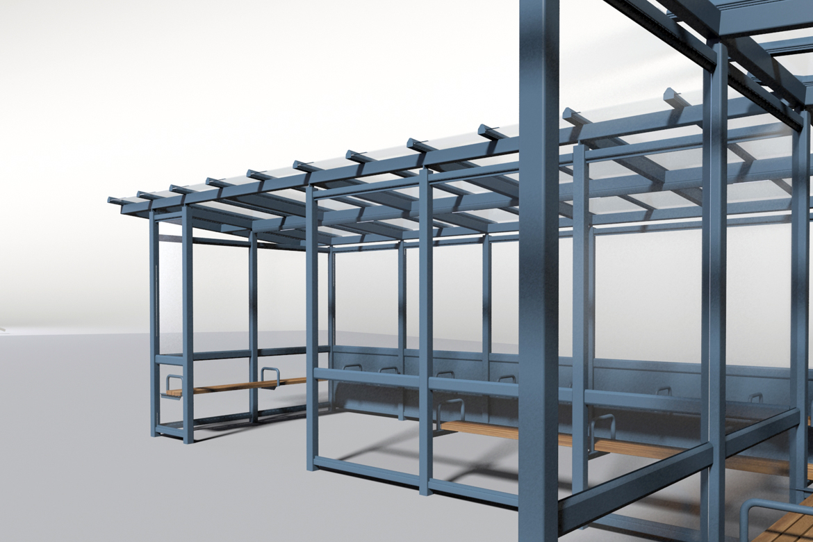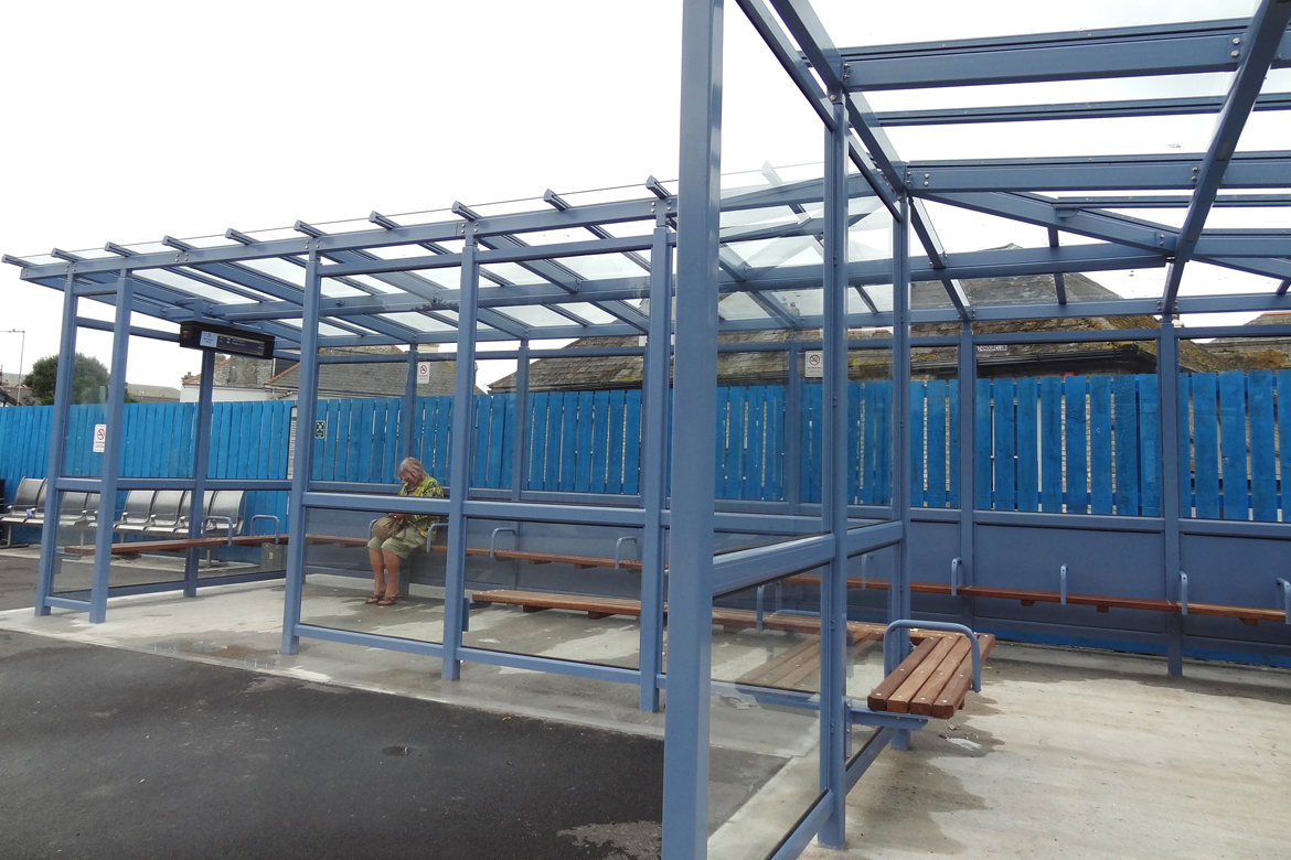 Whilst working at Queensbury Shelters we worked on the design for two new bespoke glass roof shelters located at Newquay Bus Station.