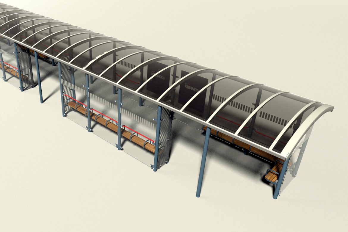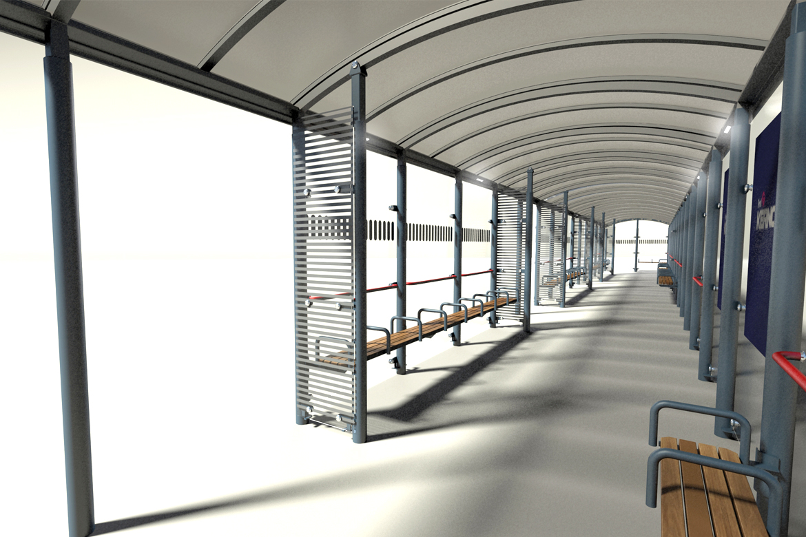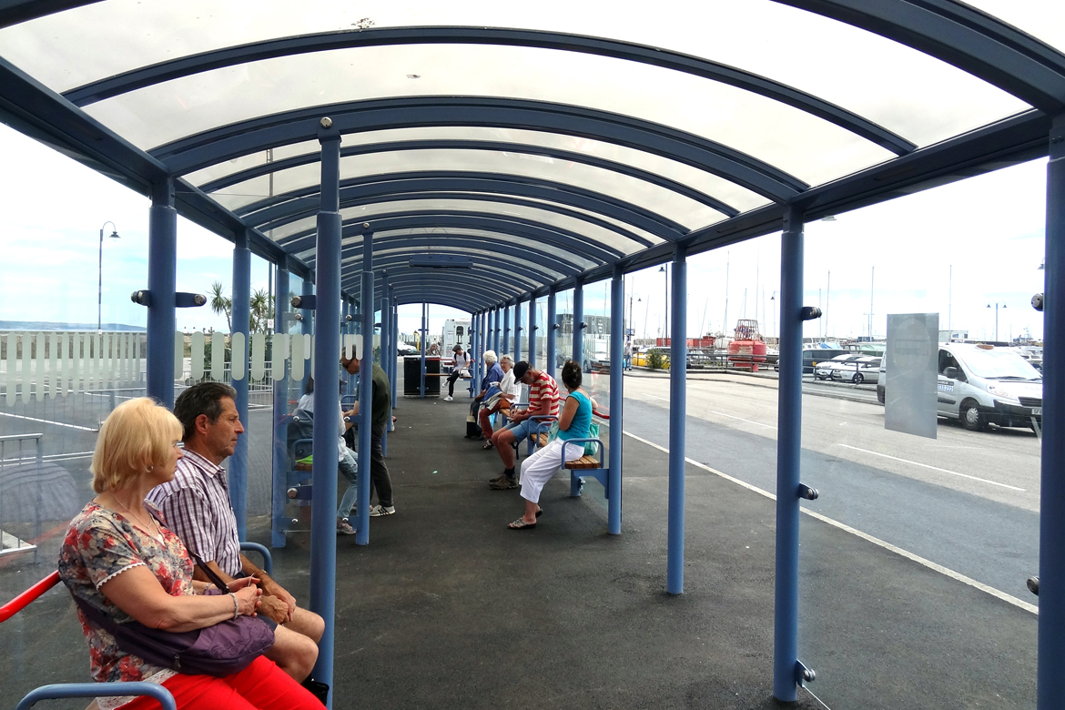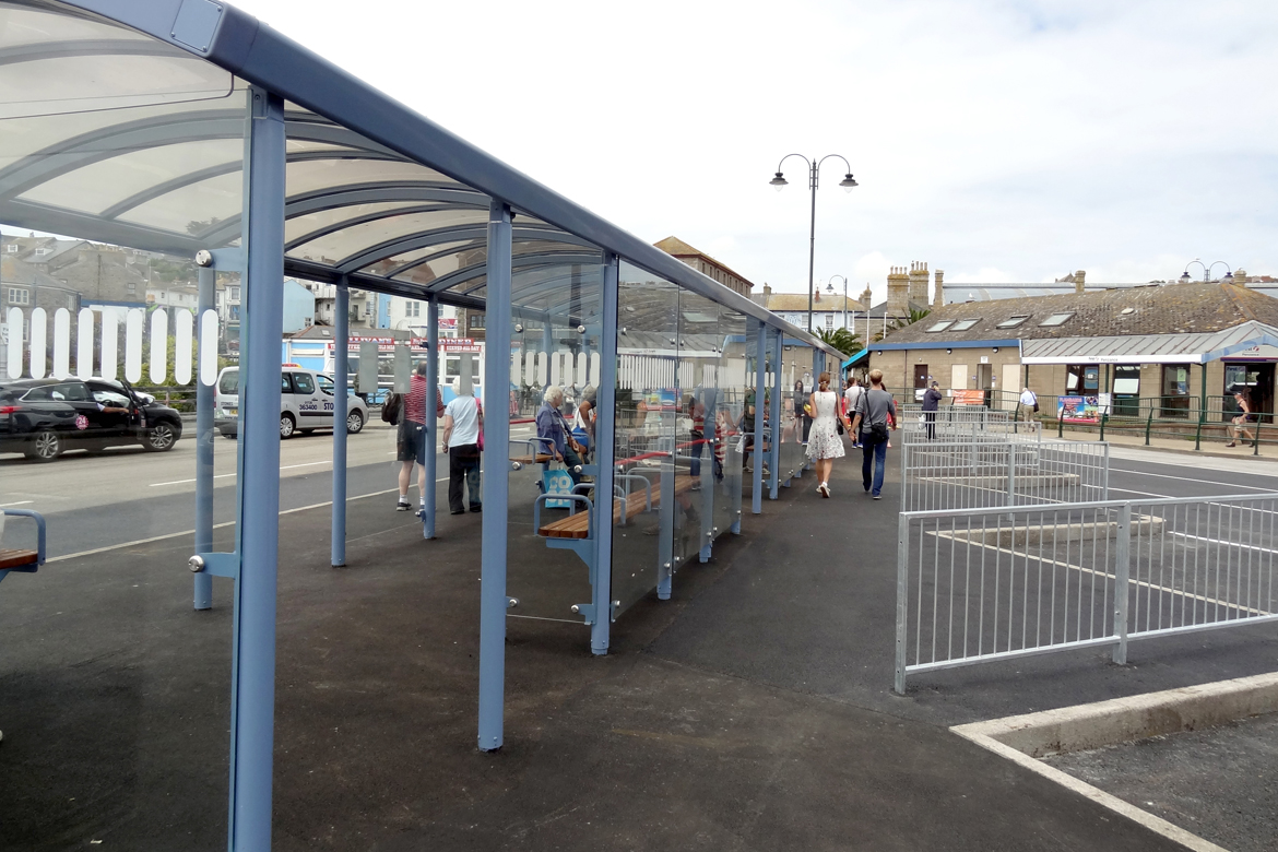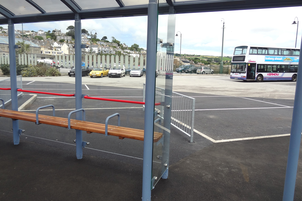 Whilst working at Queensbury shelters we worked on the design for a new bus interchange shelter to replace the existing structure at Penzance Bus Station. The project involved producing a number of design concepts and layouts for consideration by the client who was looking for a design solution that was both aesthetically pleasing and functional. The final design, Queensbury Shelters G2 shelter, was required to integrate RTPI signs, LED Lighting, Wooden Seating and Static Timetable Case.